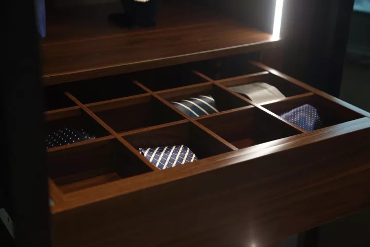 ▲ 衣柜多寶格,格子抽,領帶、絲巾等小物件的好歸宿