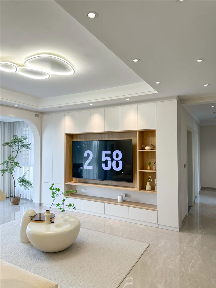 尤其是電視柜,強烈建議提前預留一個空間,將插座、電線等全都隱藏,減少落塵點。