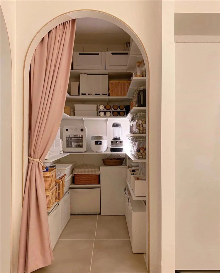 大家可以利用房子采光不好的暗區或者走廊區域做獨立儲物間,將閑置的花盆、滑板車、打氣筒、工具箱等各項雜物,一并收納。