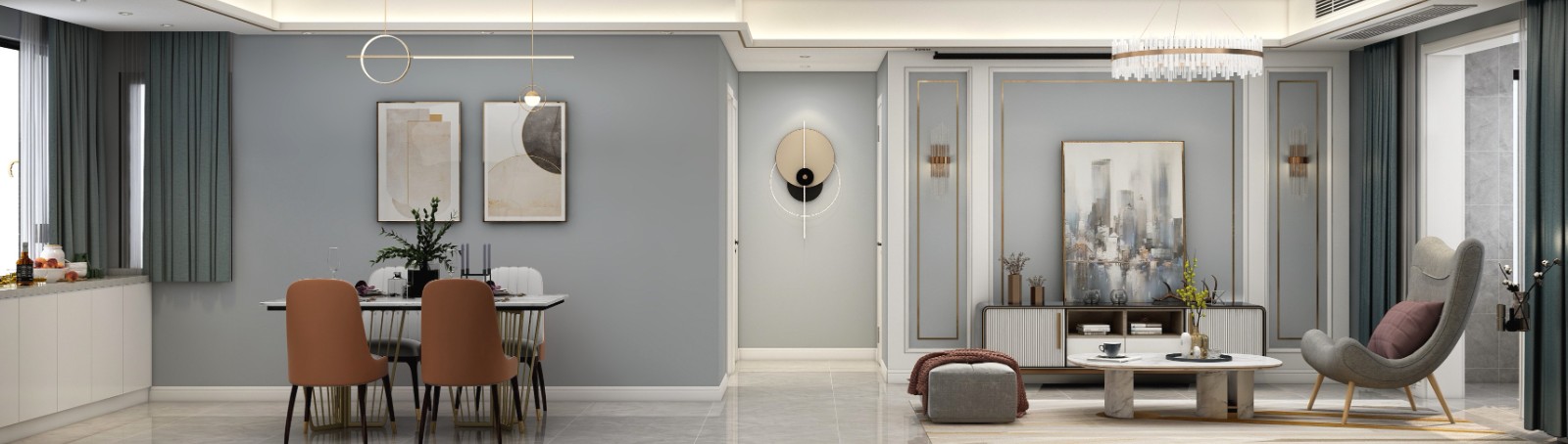 案例簡(jiǎn)介:本案例的業(yè)主是一對(duì)年輕的夫婦,兩人崇尚簡(jiǎn)約、自由舒適的生活,因此本案例的設(shè)計(jì)以舒適潔凈為主,家裝風(fēng)格選擇為相對(duì)比較經(jīng)典耐看的現(xiàn)代輕奢風(fēng),色彩則選擇為當(dāng)下比較流行的自然系淺色元素,搭配以各種細(xì)節(jié)裝飾點(diǎn)綴,強(qiáng)調(diào)溫馨舒適的氛圍。整體軟裝借助輕奢的材料質(zhì)感與精致的造型設(shè)計(jì)來(lái)提升空間質(zhì)感。