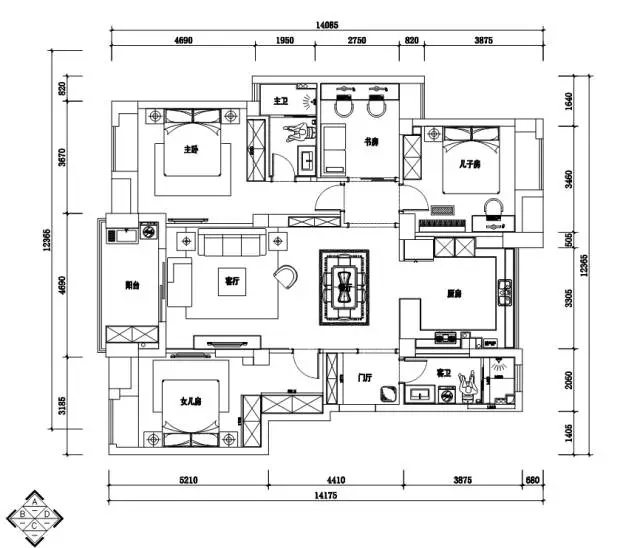 業(yè)主比較喜歡看港劇,本身也是從事科技行業(yè),四室兩廳的戶(hù)型比較開(kāi)闊,所以硬朗的港式風(fēng)格比較適合。