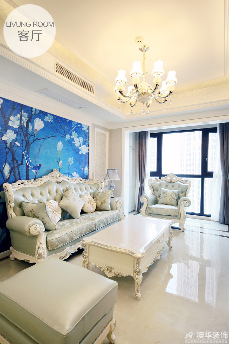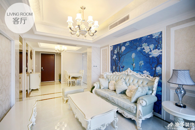 乍一看沙發(fā)背景,恍如走進愛麗絲夢游仙境,又像是誤入了《奇幻森林》,湖水藍與純凈白勾勒的畫面,神秘而輕盈。