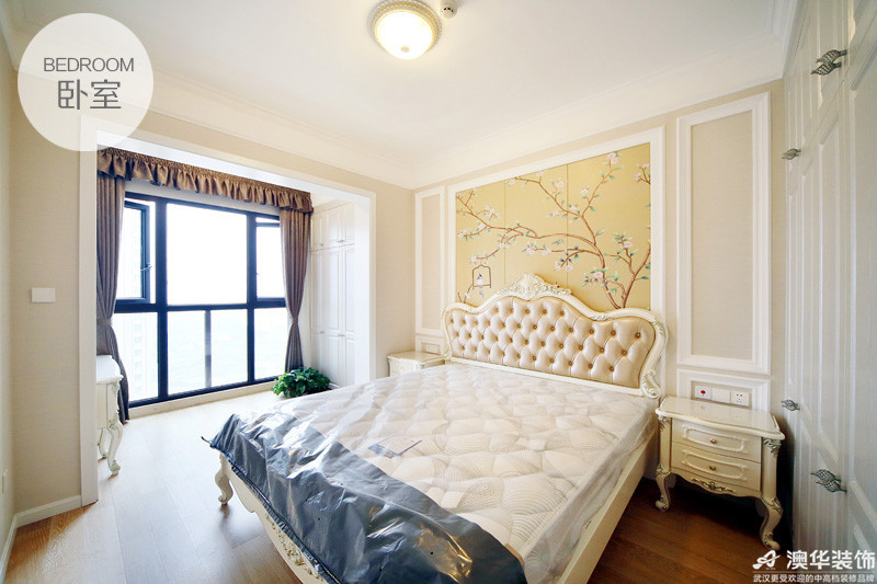臥室配置,簡潔中透著典雅的韻味。經典歐式靠背、石膏護墻板、春日私語墻布,在原本極簡的硬裝環(huán)境下,精致優(yōu)雅卻不過分華麗。