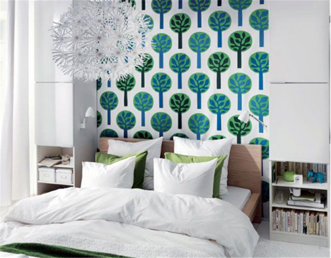 九、臥室樹木圖案背景墻面直接作為分隔墻