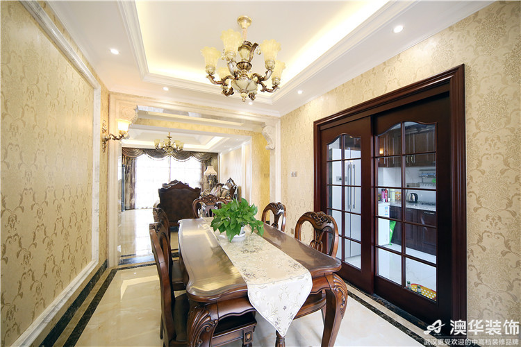 在家居設計風格上,黃女士并未有過多糾結。四室兩廳的戶型,有充足的空間就要裝得其所,裝出家人滿意、家居便利的效果。簡單征詢家人的意愿后,黃女士果斷采納了設計師汪海的建議:以歐式硬裝為主,美式軟裝為輔的多元設計方案。