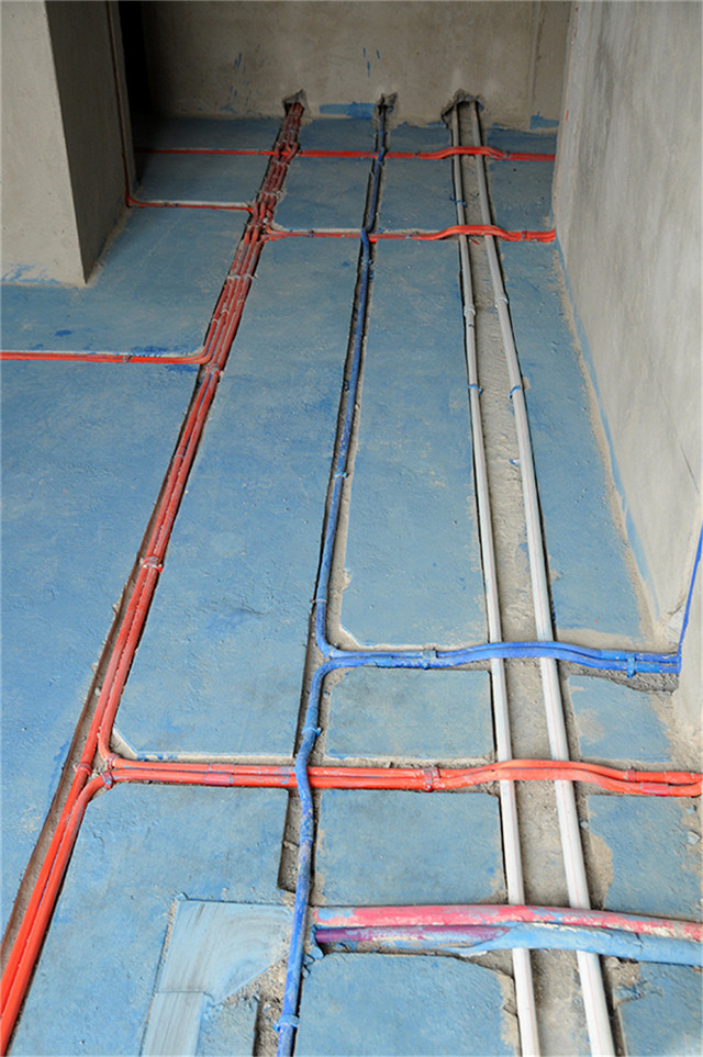 驗收攻略:禁止把水管壓在管線上面,首先要分清水管和管線。標有紅線的粗管是熱水管,標有藍線的粗管是冷水管,較細的純白色管是管線。
