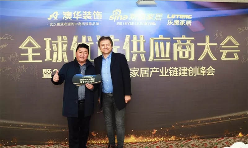 ▲?瑞士盧森地板對華業務總經理弗蘭克、武漢區代理商曾慶豐