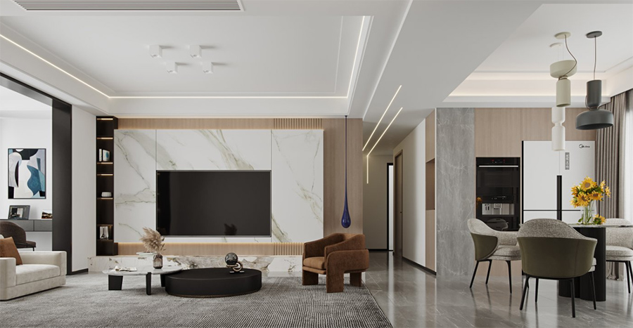 設計就是著于點線面的靈活運用,把整個環境營造出家的溫馨。本案位于芳草雅靜,面積142㎡,3室2廳。